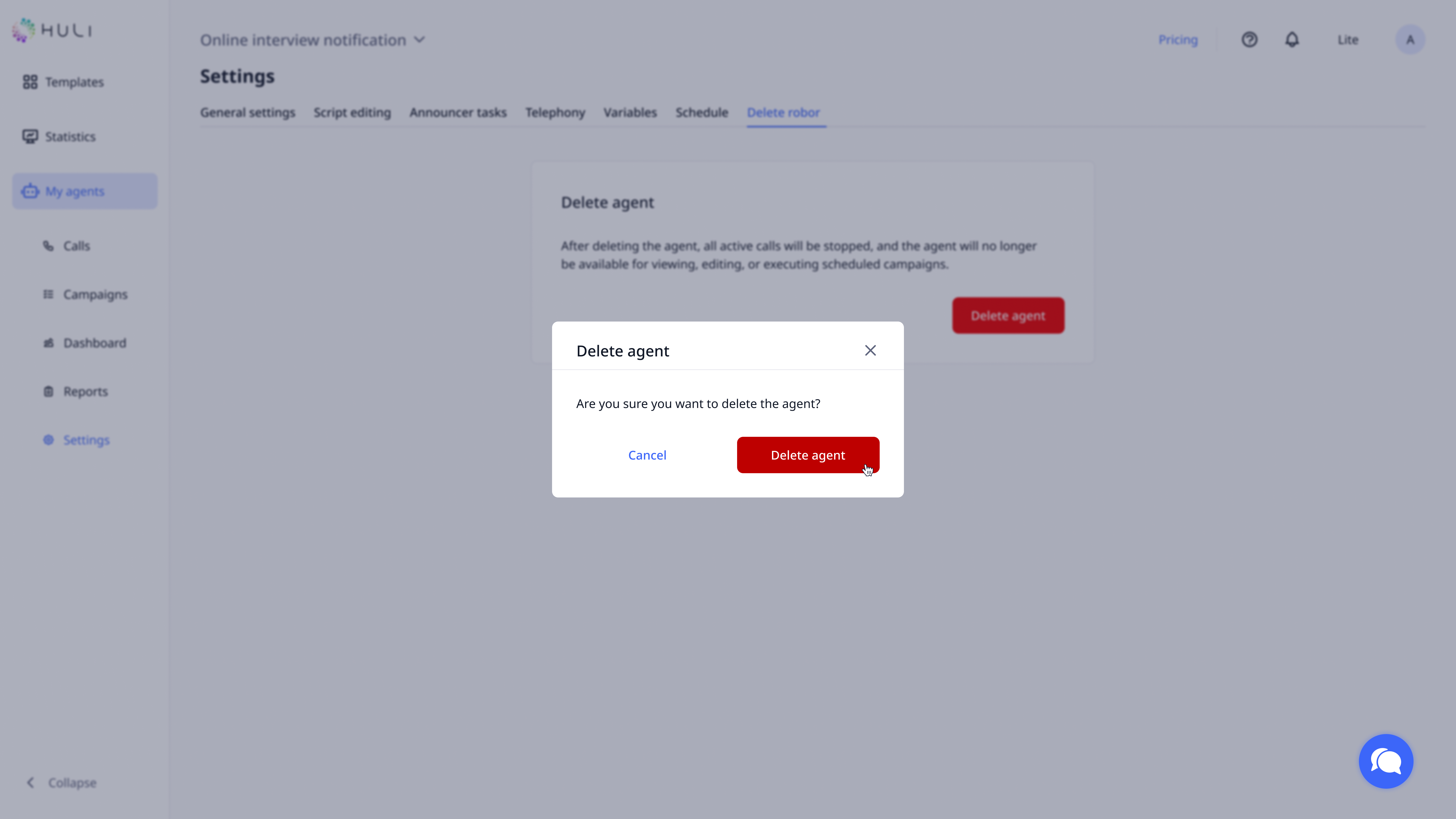 You can deactivate (delete) your agent at “Delete agent” page in Settings.