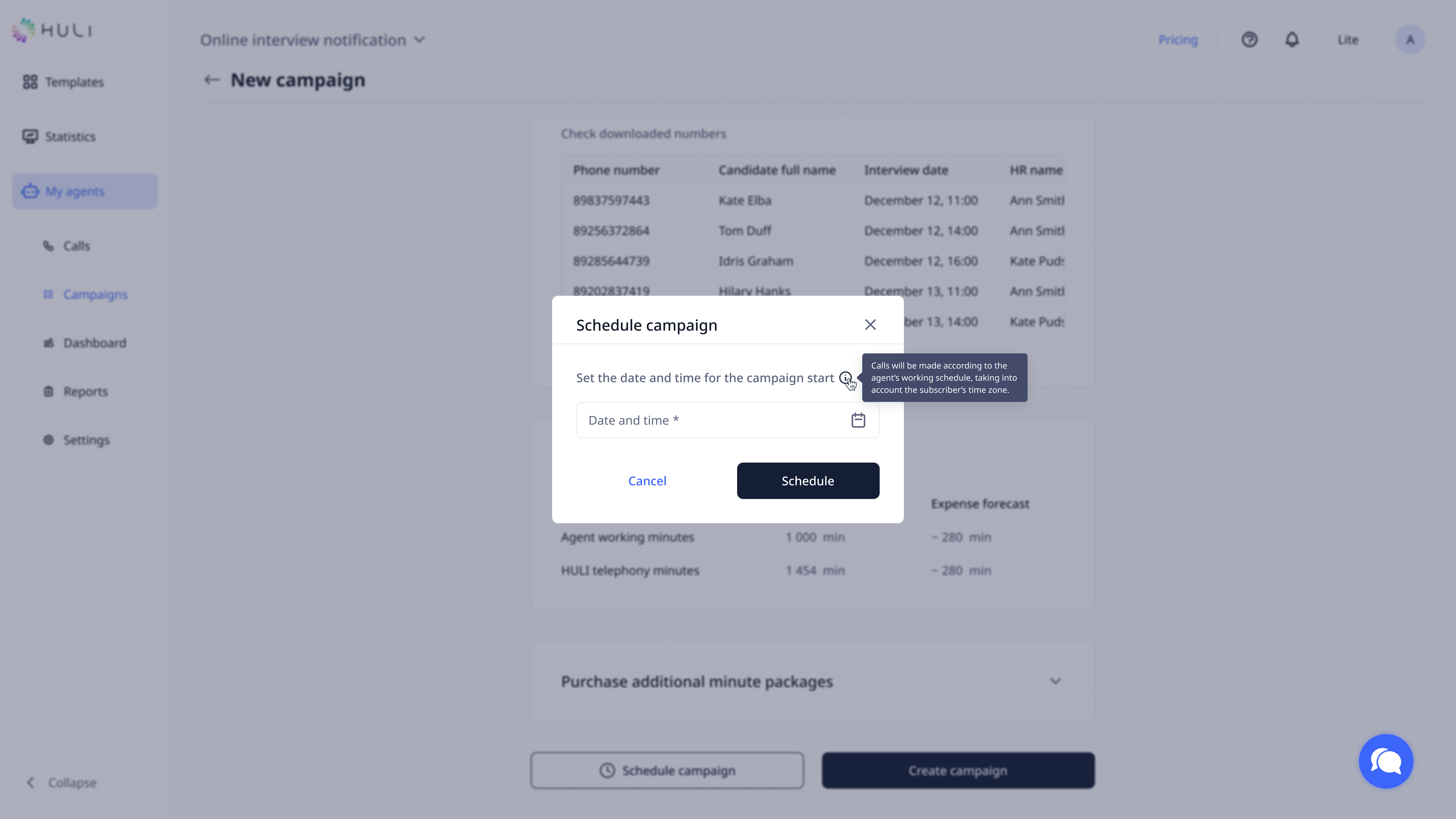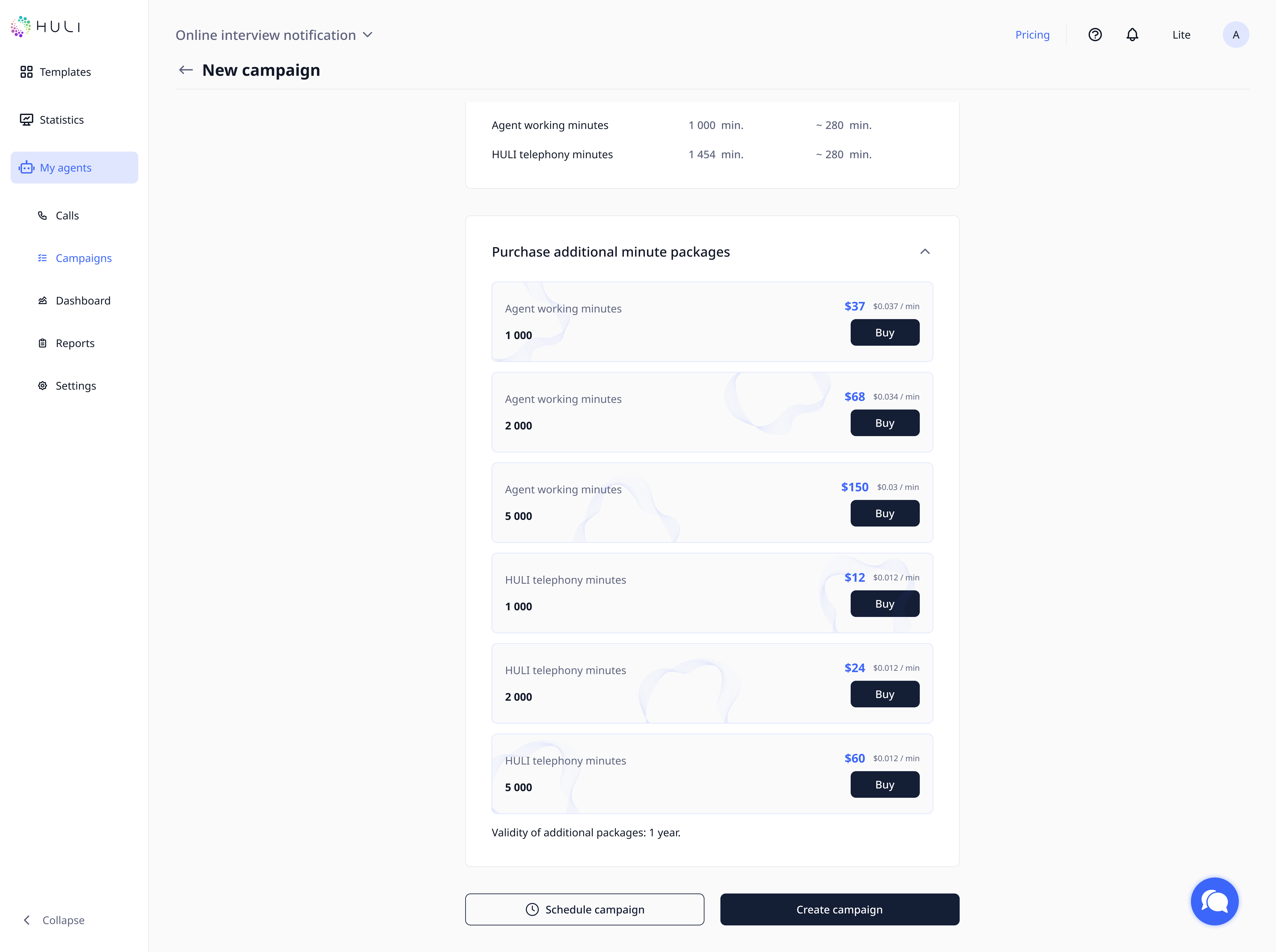 Before launching your campaign, ensure you have sufficient calling minutes:
