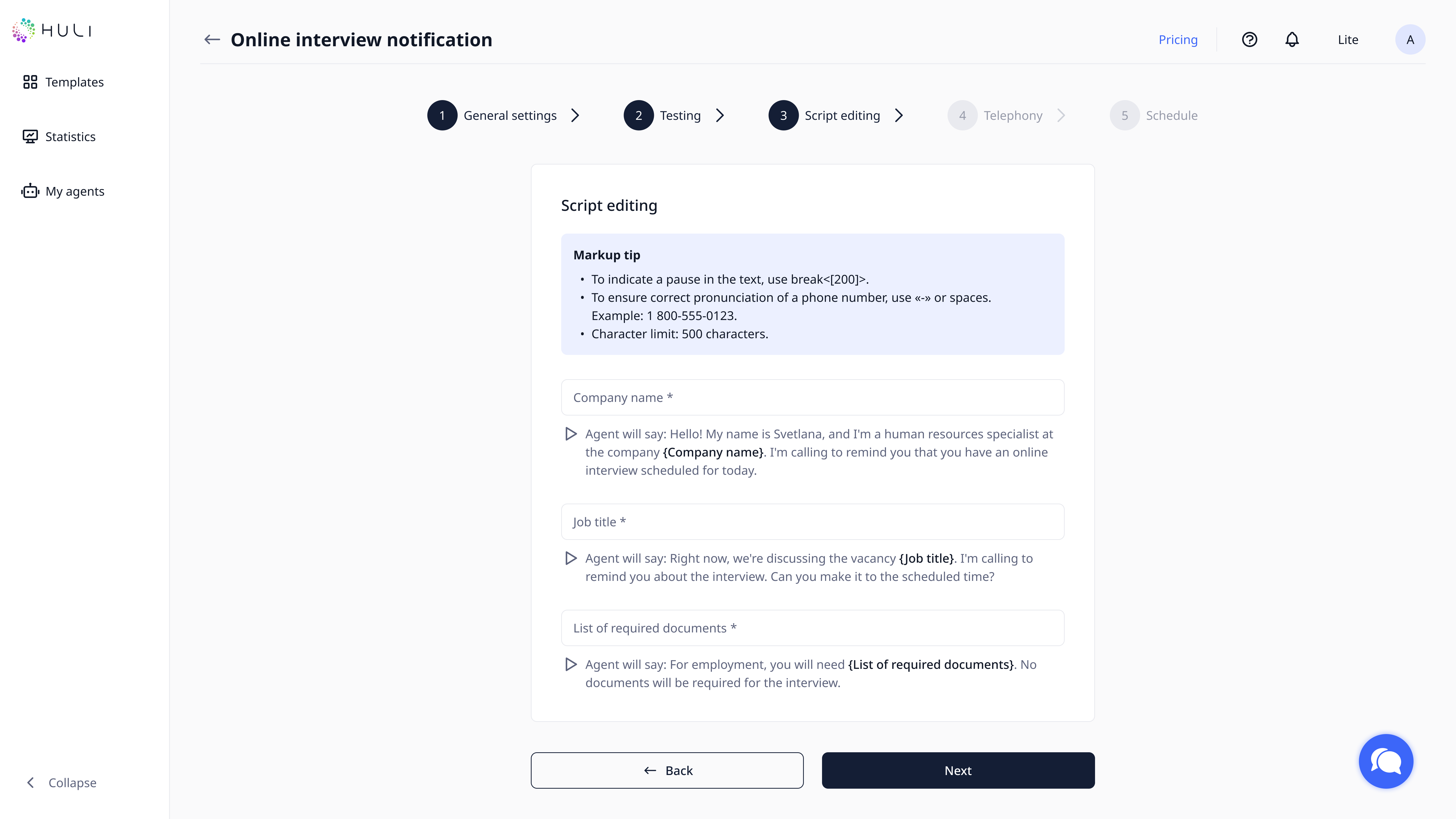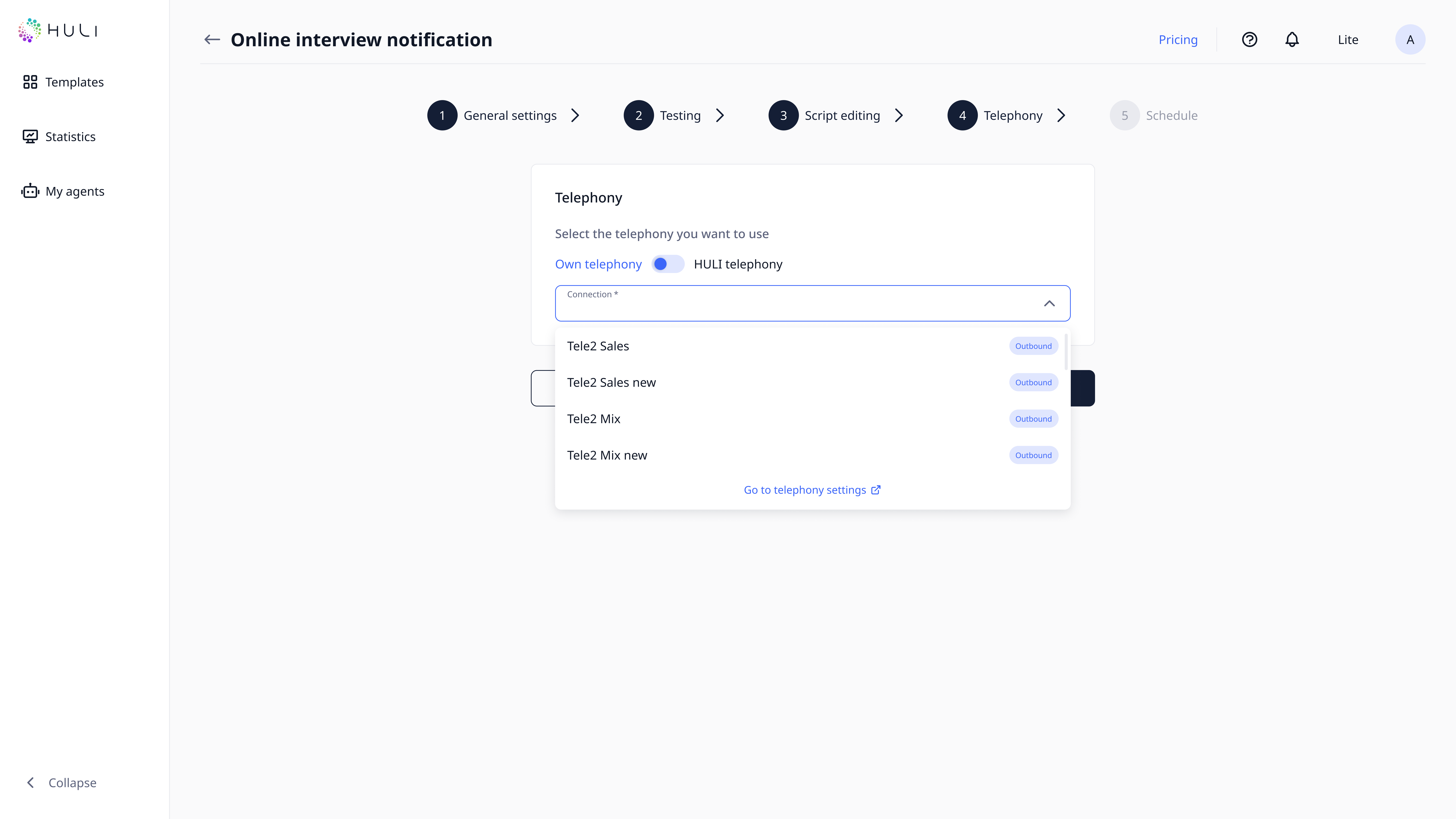 Available only on paid plans that include HULI telephony