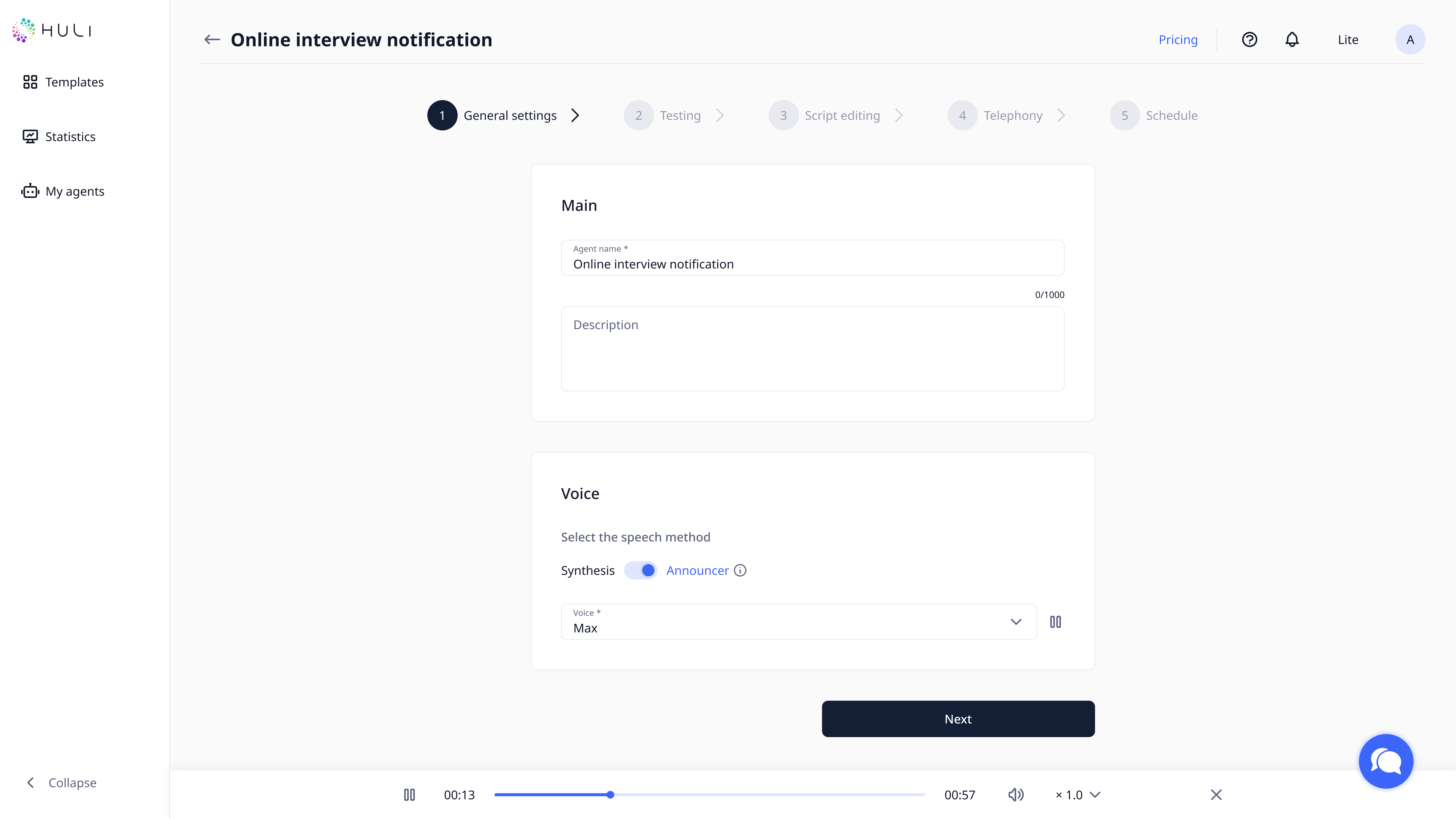 Listen to dialogue samples to hear how the agent will sound